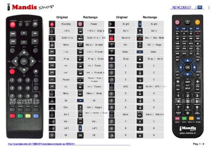 Un document est inclus pour vous aider à utiliser facilement la nouvelle télécommande, en indiquant la correspondance des boutons.