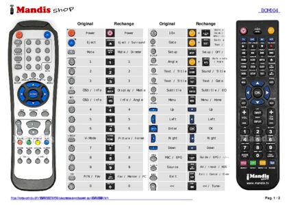 Un document est inclus pour vous aider à utiliser facilement la nouvelle télécommande, en indiquant la correspondance des boutons.
