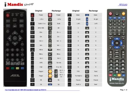 Accueil > Marques > Télécommandes Axil > Télécommande pour Axil RT 0140