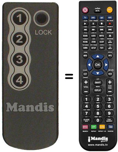 Télécommande qui remplace celle d'origine car elle possède les mêmes fonctions. Il ne s'agit pas d'une télécommande universelle mais d'une télécommande qui remplace celle d'origine. Vous recevrez la télécommande prête à fonctionner, vous n'aurez qu'à mettre les piles. Il n'est pas nécessaire de la programmer. Nous vous garantissons que la télécommande aura exactement les mêmes fonctions que celle d'origine.