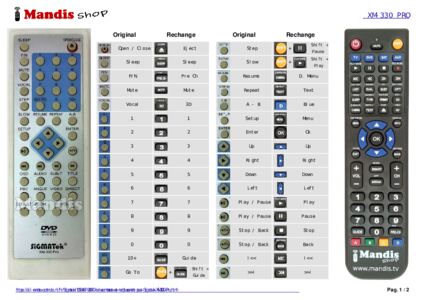 Un document est inclus pour vous aider à utiliser facilement la nouvelle télécommande, en indiquant la correspondance des boutons.