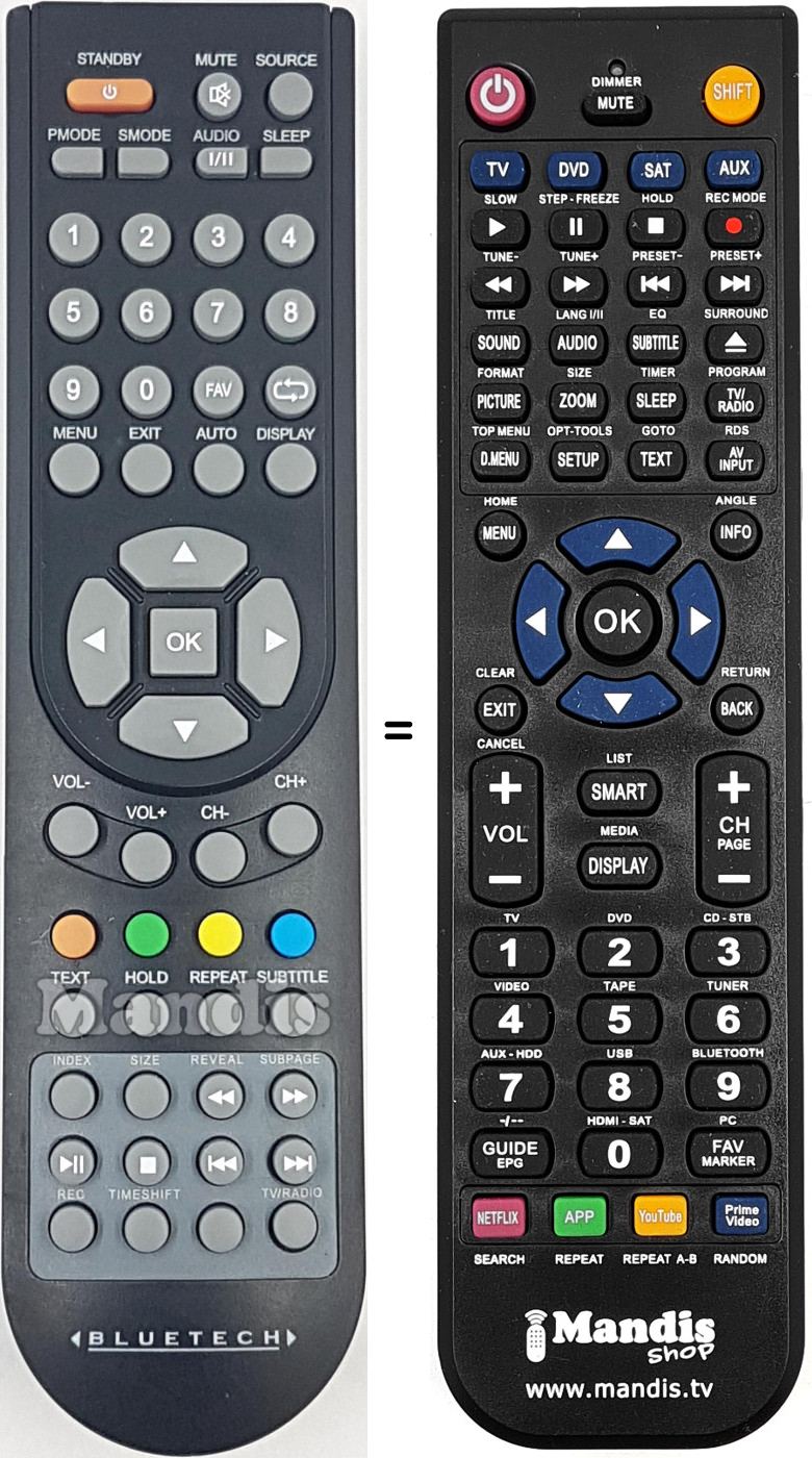 Télécommande qui remplace celle d'origine car elle possède les mêmes fonctions.