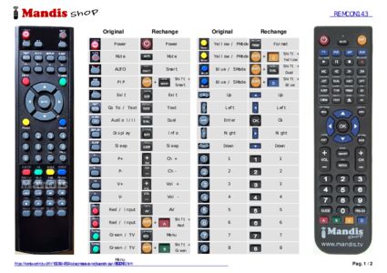 Un document est inclus pour vous aider à utiliser facilement la nouvelle télécommande, en indiquant la correspondance des boutons.