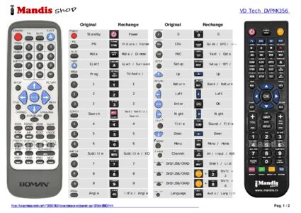 Un document est inclus pour vous aider à utiliser facilement la nouvelle télécommande, en indiquant la correspondance des boutons.