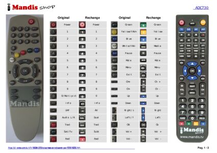 Un document est inclus pour vous aider à utiliser facilement la nouvelle télécommande, en indiquant la correspondance des boutons.