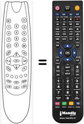 Télécommande qui remplace celle d'origine car elle possède les mêmes fonctions.