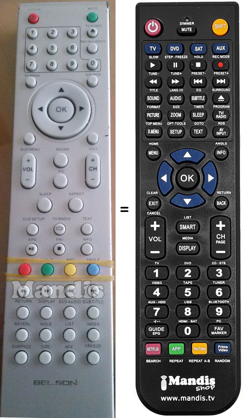 Télécommande qui remplace celle d'origine car elle possède les mêmes fonctions.
