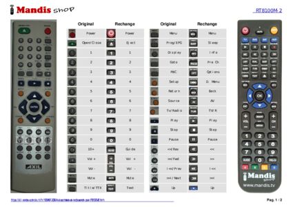 Un document est inclus pour vous aider à utiliser facilement la nouvelle télécommande, en indiquant la correspondance des boutons.