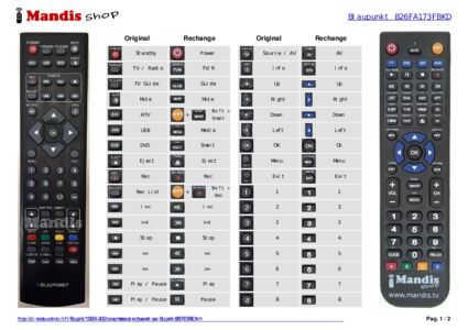 Un document est inclus pour vous aider à utiliser facilement la nouvelle télécommande, en indiquant la correspondance des boutons.