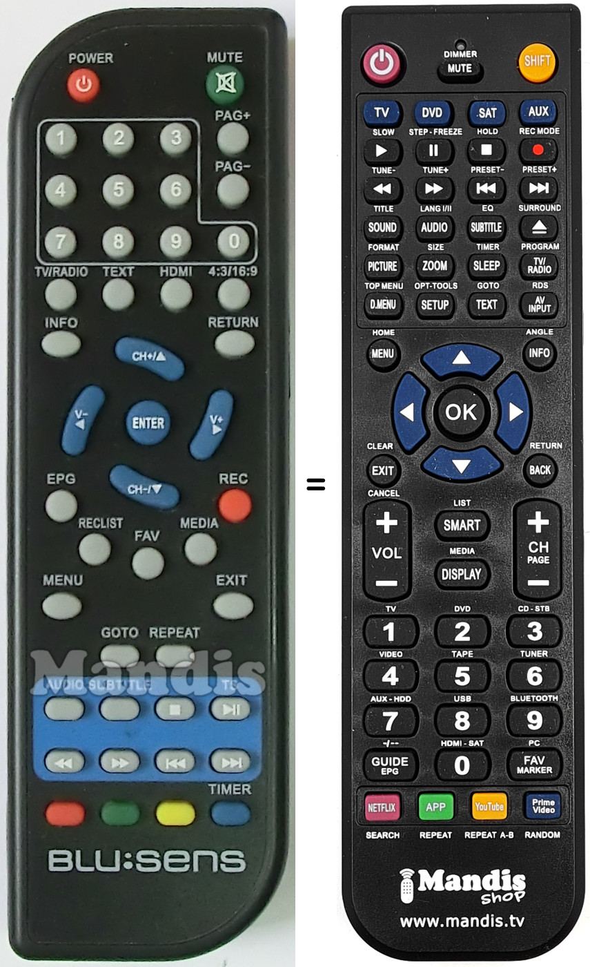 Télécommande qui remplace celle d'origine car elle possède les mêmes fonctions.