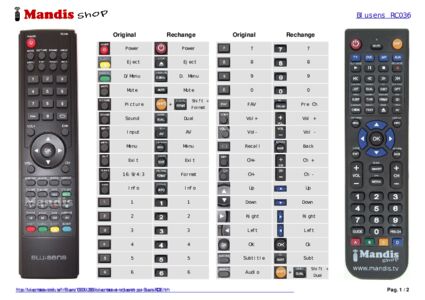 Un document est inclus pour vous aider à utiliser facilement la nouvelle télécommande, en indiquant la correspondance des boutons.