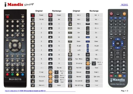 Un document est inclus pour vous aider à utiliser facilement la nouvelle télécommande, en indiquant la correspondance des boutons.