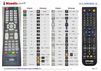 Un document est inclus pour vous aider à utiliser facilement la nouvelle télécommande, en indiquant la correspondance des boutons.