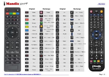 Un document est inclus pour vous aider à utiliser facilement la nouvelle télécommande, en indiquant la correspondance des boutons.