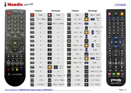 Accueil > Marques > Télécommandes CAHORS > Télécommande pour CAHORS TVT280-HD