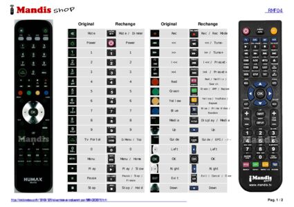 excellente télécommande fonctionne parfaitement avec humax TN 5050HDR moins chère que celle d'origine 100% satisfait je recommande MANDIS shop