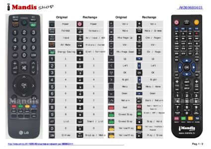 Un document est inclus pour vous aider à utiliser facilement la nouvelle télécommande, en indiquant la correspondance des boutons.