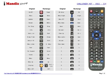 Question sur CHALLENGER HST-0502-314 remote control