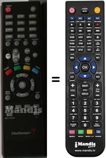 Télécommande qui remplace celle d'origine car elle possède les mêmes fonctions.