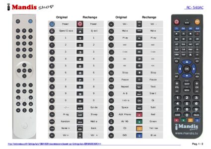 Un document est inclus pour vous aider à utiliser facilement la nouvelle télécommande, en indiquant la correspondance des boutons.