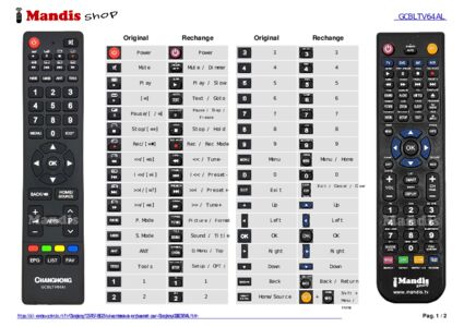 Un document est inclus pour vous aider à utiliser facilement la nouvelle télécommande, en indiquant la correspondance des boutons.