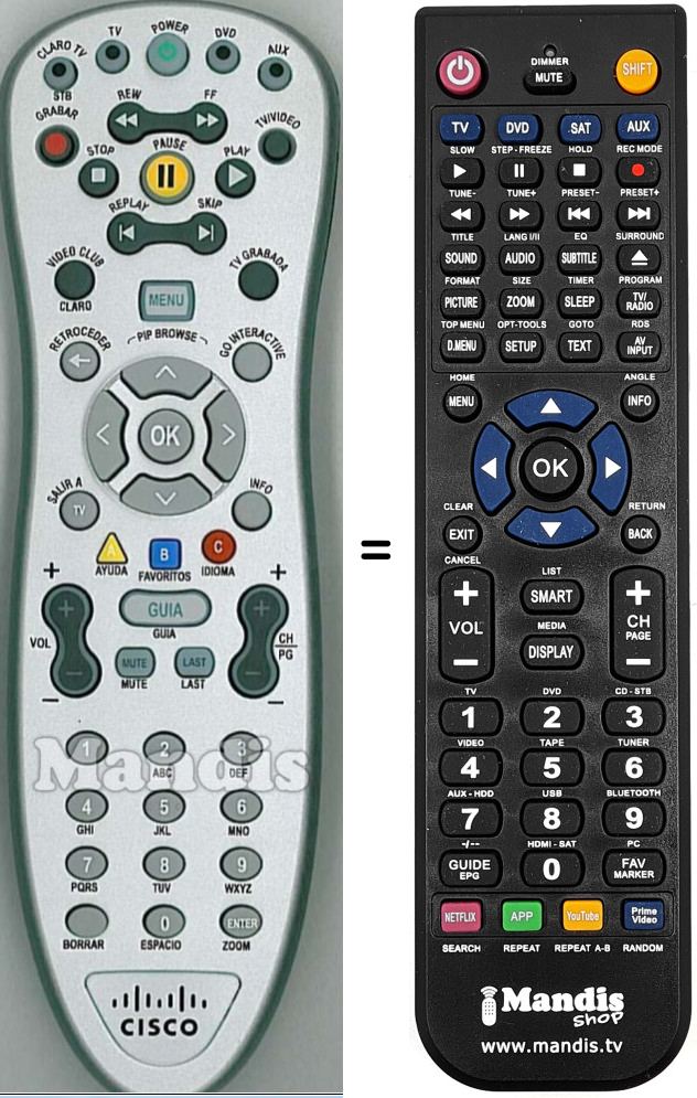 Télécommande qui remplace la télécommande d'origine Cisco001 car elle possède les mêmes fonctions.