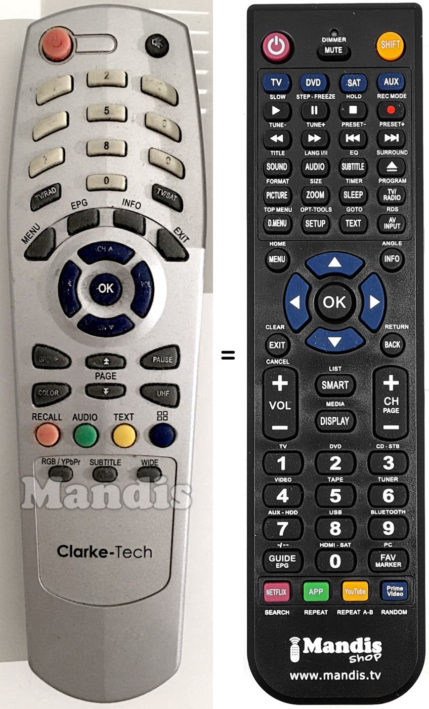 Télécommande qui remplace celle d'origine car elle possède les mêmes fonctions.