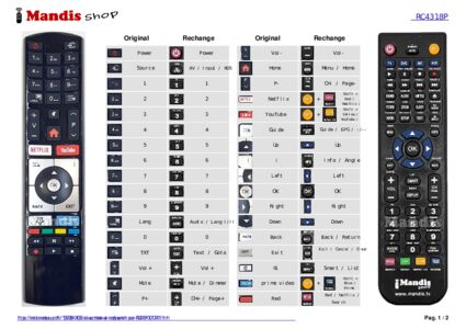 Un document est inclus pour vous aider à utiliser facilement la nouvelle télécommande, en indiquant la correspondance des boutons.