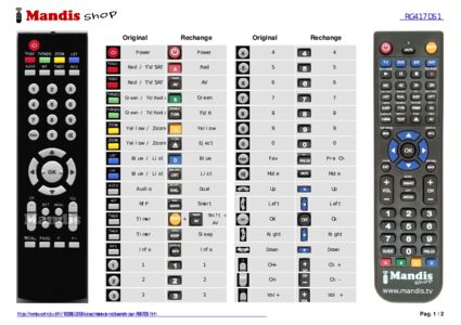 Un document est inclus pour vous aider à utiliser facilement la nouvelle télécommande, en indiquant la correspondance des boutons.