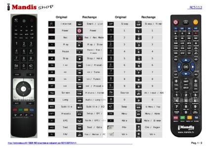 Un document est inclus pour vous aider à utiliser facilement la nouvelle télécommande, en indiquant la correspondance des boutons.