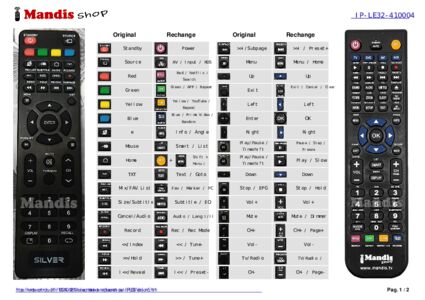 Un document est inclus pour vous aider à utiliser facilement la nouvelle télécommande, en indiquant la correspondance des boutons.