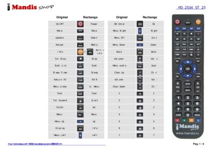 Un document est inclus pour vous aider à utiliser facilement la nouvelle télécommande, en indiquant la correspondance des boutons.