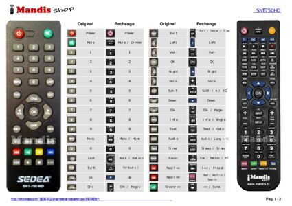 Un document est inclus pour vous aider à utiliser facilement la nouvelle télécommande, en indiquant la correspondance des boutons.