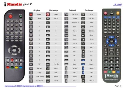 Un document est inclus pour vous aider à utiliser facilement la nouvelle télécommande, en indiquant la correspondance des boutons.
