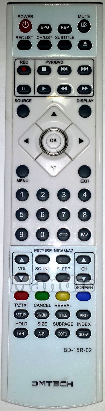 Télécommande d'origine BD15R02 pour téléviseurs de la marque DMTech. Il s'agit d'un modèle de télécommande d'origine.
