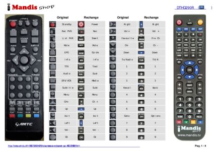 Un document est inclus pour vous aider à utiliser facilement la nouvelle télécommande, en indiquant la correspondance des boutons.