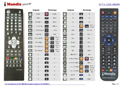 Un document est inclus pour vous aider à utiliser facilement la nouvelle télécommande, en indiquant la correspondance des boutons.