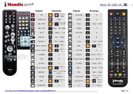 Un document est inclus pour vous aider à utiliser facilement la nouvelle télécommande, en indiquant la correspondance des boutons.