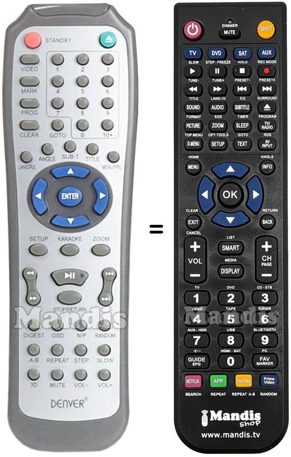 Cette télécommande remplace entièrement votre DVD706K et offre toutes les fonctions de l'originale.