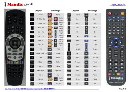 Un document est inclus pour vous aider à utiliser facilement la nouvelle télécommande, en indiquant la correspondance des boutons.