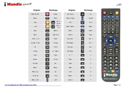 Un document est inclus pour vous aider à utiliser facilement la nouvelle télécommande, en indiquant la correspondance des boutons.
