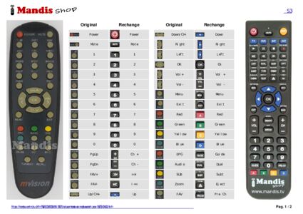 Un document est inclus pour vous aider à utiliser facilement la nouvelle télécommande, en indiquant la correspondance des boutons.