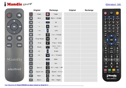 Accueil > Marques > Télécommandes Edenwood > Télécommande pour Edenwood BDSC40