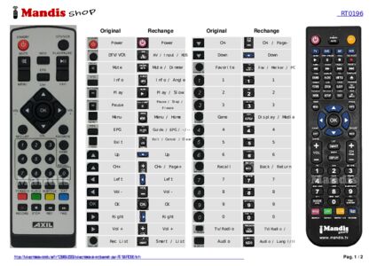 Un document est inclus pour vous aider à utiliser facilement la nouvelle télécommande, en indiquant la correspondance des boutons.