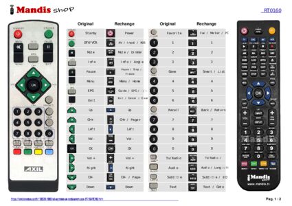 Un document est inclus pour vous aider à utiliser facilement la nouvelle télécommande, en indiquant la correspondance des boutons.