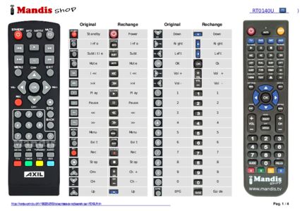 Un document est inclus pour vous aider à utiliser facilement la nouvelle télécommande, en indiquant la correspondance des boutons.