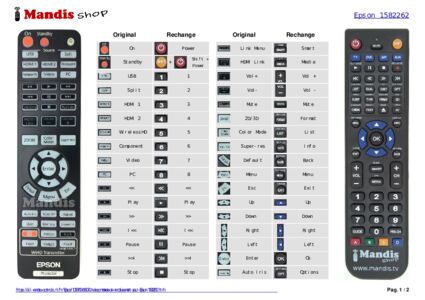 Accueil > Marques > Télécommandes Epson > Télécommande pour Epson 1582262