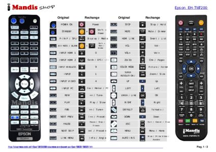 Accueil > Marques > Télécommandes Epson > Télécommande pour Epson EH-TW7200