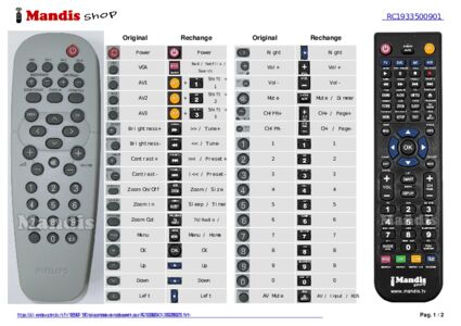 Un document est inclus pour vous aider à utiliser facilement la nouvelle télécommande, en indiquant la correspondance des boutons.