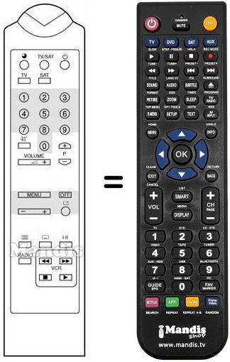 Télécommande qui remplace celle d'origine car elle possède les mêmes fonctions. Il ne s'agit pas d'une télécommande universelle mais d'une télécommande qui remplace celle d'origine. Vous recevrez la télécommande prête à fonctionner, vous n'aurez qu'à mettre les piles. Il n'est pas nécessaire de la programmer. Nous vous garantissons que la télécommande aura exactement les mêmes fonctions que celle d'origine.